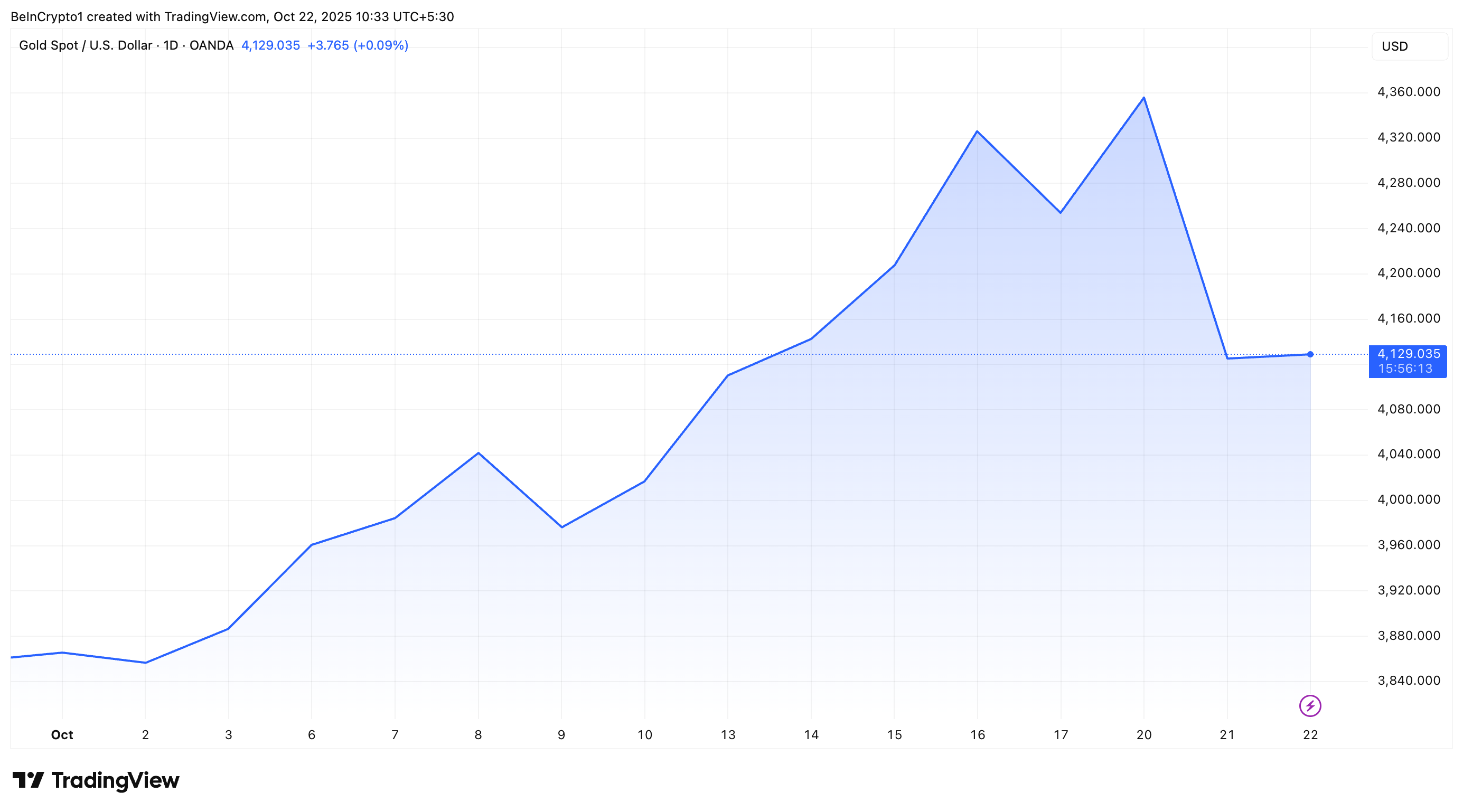 BeInCrypto previously reported that gold prices continue to trend upward this month. Traditional safe-haven assets have seen strong demand even as the cryptocurrency market has been reeling from tariff-induced volatility following President Trump’s announcement.